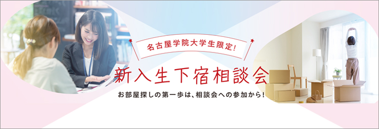 名古屋学院大学の在学生や入学試験合格者(受験生)の皆さんが安心してお部屋探しができるよう、専門の不動産会社4社と提携してキャンパス周辺の物件を紹介しています。