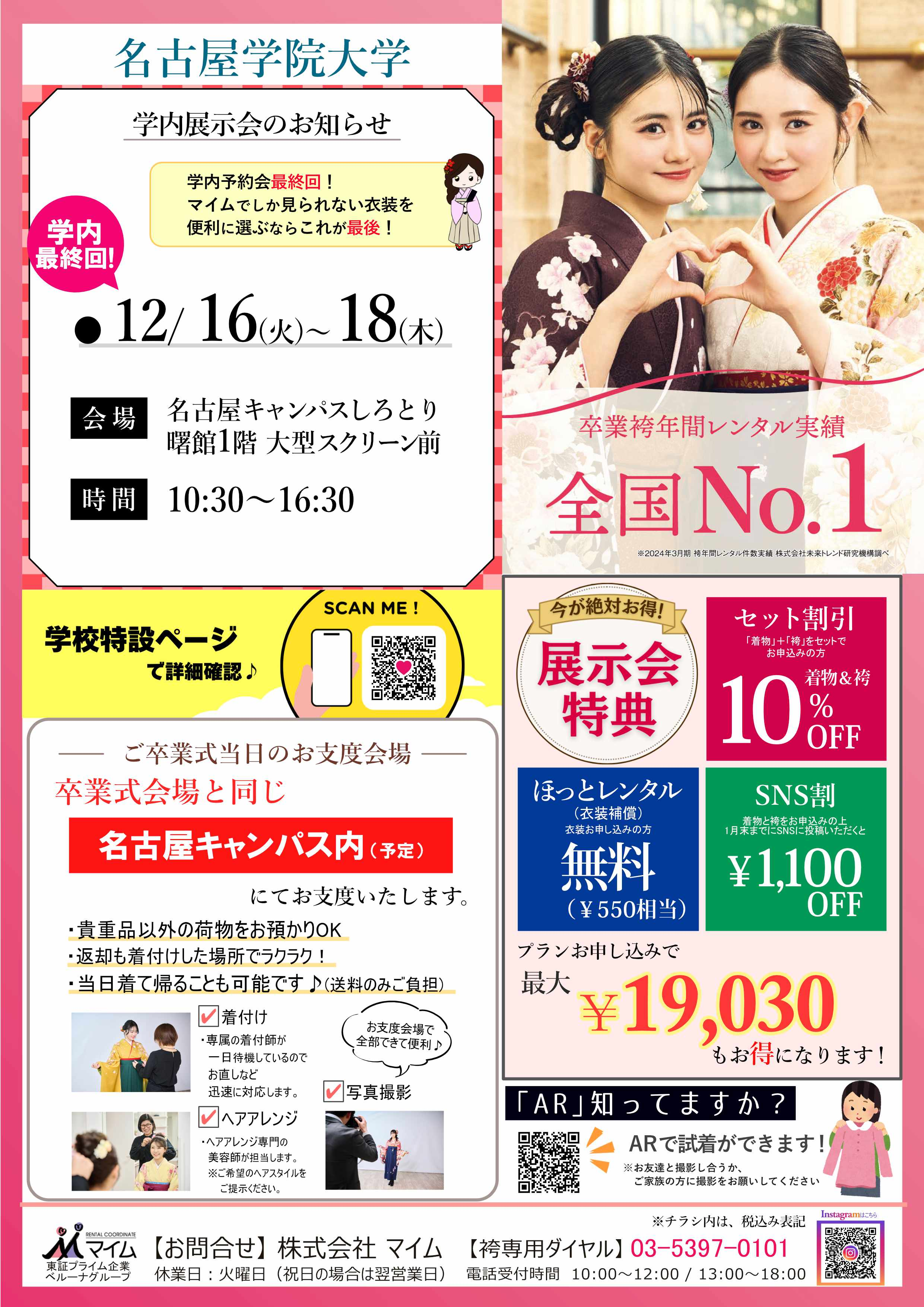 今年度3回にわたり開催してきました卒業レンタル袴の学内展示予約会。